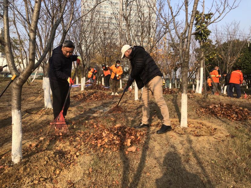 隨著冷空氣的悄然侵襲,天氣變得既寒冷又干燥,樹葉落滿了地面,不僅給居民的出行帶來不便,還影響了轄區(qū)環(huán)境的整潔。為進一步踐行勞動精神,更好地發(fā)揮臺北投資公司機關黨支部戰(zhàn)斗堡壘作用和黨員先鋒模范作用,切實保障綠化分公司創(chuàng)智綠園“冬準”工作。12月6日下午,機關黨支部聯(lián)合綠化分公司黨支部在創(chuàng)智綠園開展“踐行勞動精神,集中清除落葉”突擊勞動活動。