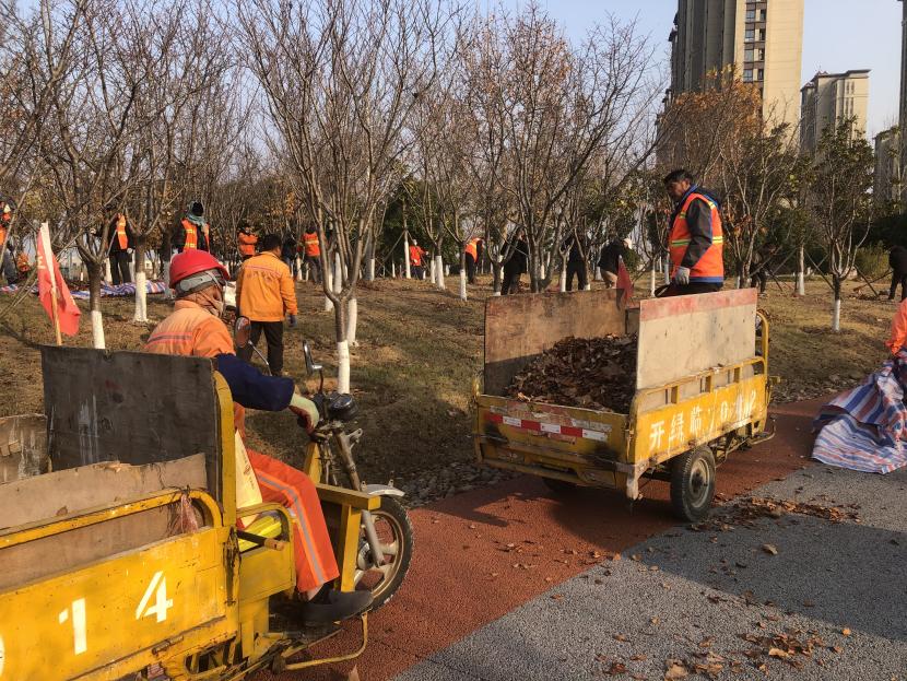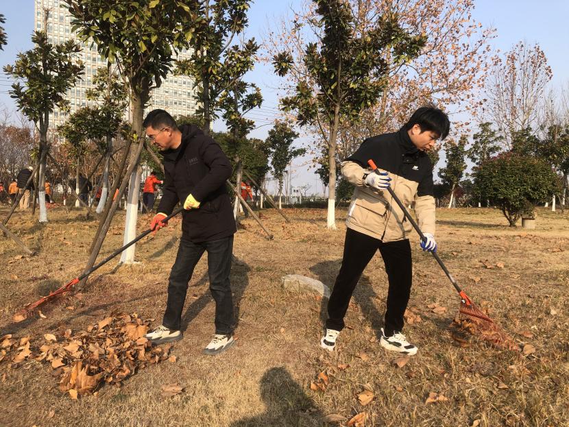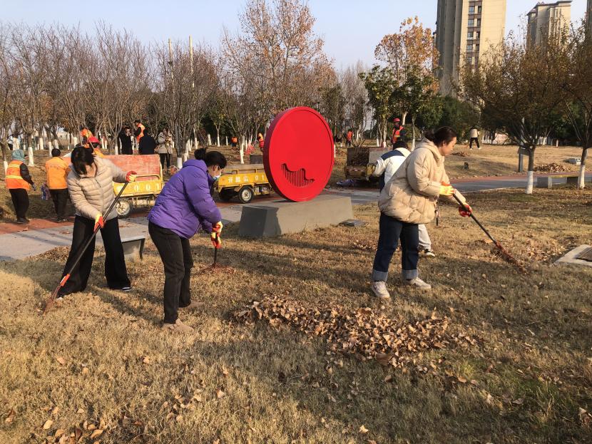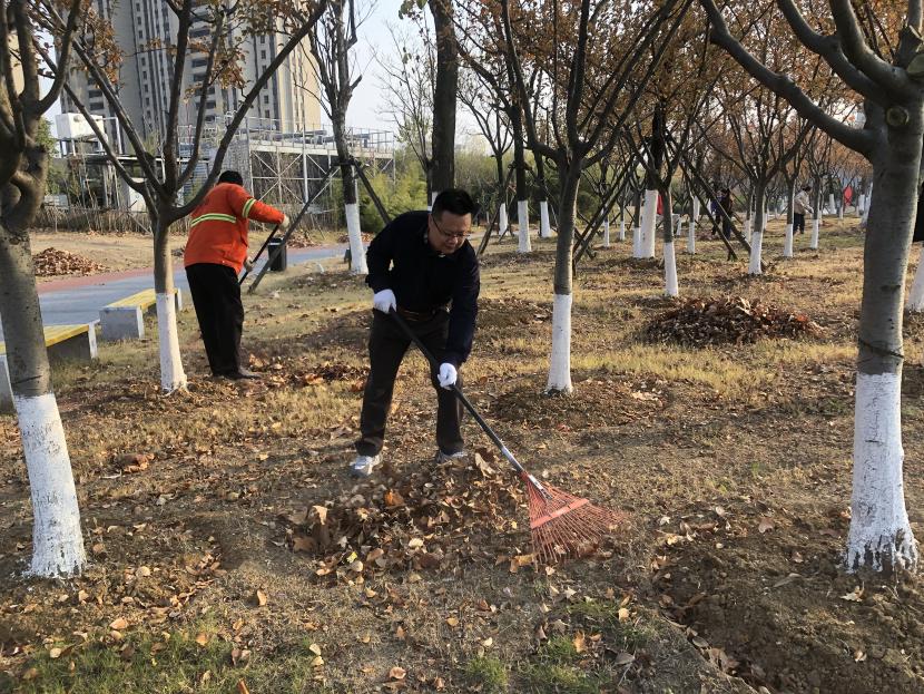 活動現(xiàn)場,黨員同志、積極分子分為兩撥,分別從創(chuàng)智綠園北門和東門對園內(nèi)雜草落葉進行清除。在戴好手套,做好防護、防凍措施的同時,紛紛拿著掃帚、耙子等工具,統(tǒng)籌安排、分工勞作,齊心協(xié)力,有的用掃帚掃落葉、有的用袋子裝落葉、有的用耙子摟落葉……大家忙得熱火朝天,充分發(fā)揚不怕臟、不怕苦、不怕累的黨員先鋒本色,創(chuàng)智綠園內(nèi)處處是同志們清理雜草落葉的身影,構成了一道亮麗的風景線,經(jīng)過一個多小時的辛勤勞動,兩撥隊伍順利“會師”,沿途雜草落葉被清理得干干凈凈,公園環(huán)境也得到明顯改善。