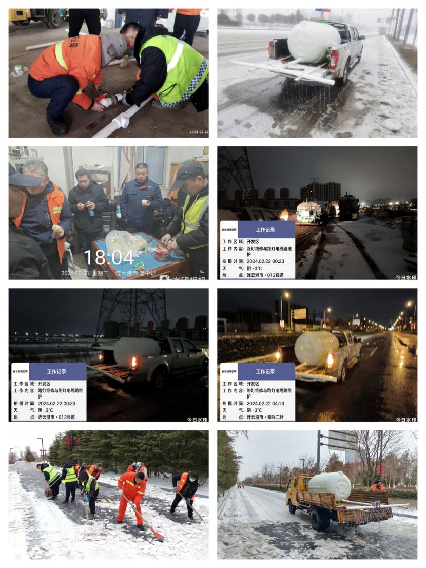 21日夜晚降雪漸止,該黨支部出動四臺車輛,按照設(shè)計好的路線多次往返于花果山大道、黃海大道、東方大道等開發(fā)區(qū)范圍內(nèi)主次干道噴灑融雪劑。在公司負責人的帶領(lǐng)下,已連續(xù)3日吃住在單位靠前指揮,參加一線掃雪除冰活動。喬以成、袁桂誠等老同志隨車同行隨時解決技術(shù)難題保障除冰工作順利進行。由于路面積雪嚴重需要一便又一便的拋灑,該黨支部又合理安排人員車輛上半夜和下半夜不間斷噴哂保障路面不結(jié)冰,全體黨員干群頂著寒風、排隊抽取防凍液時踩著光滑結(jié)冰的路面在低溫下瑟瑟發(fā)抖,為了第二天人們的順利出行他們也是拼盡了全力,再一次展示了鐵軍的光輝形象。