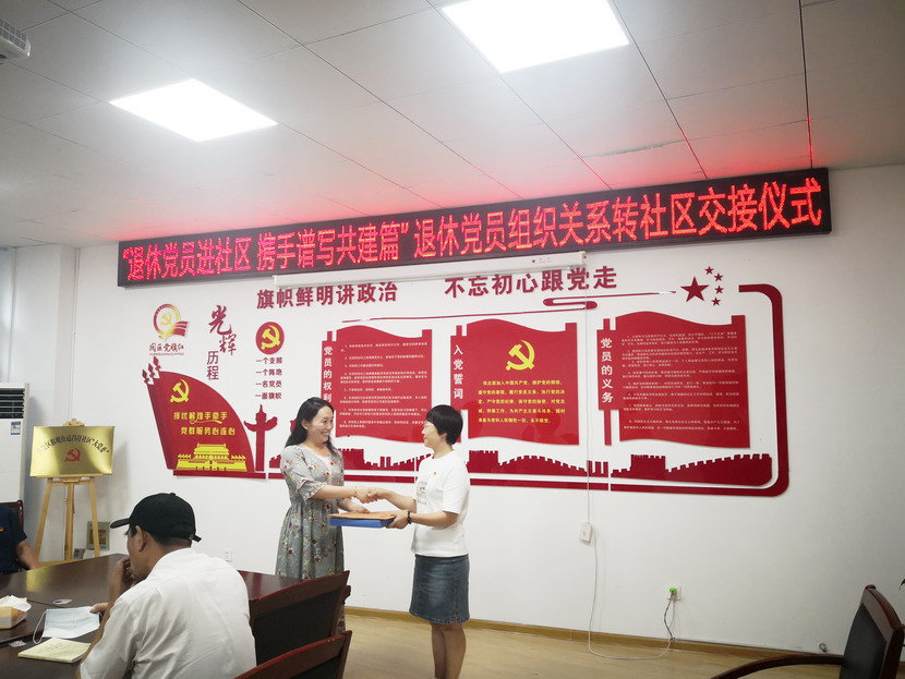 黨員組織關(guān)系規(guī)范轉(zhuǎn)接是事關(guān)黨員黨性和組織觀念的重要工作,是加強基層黨組織建設(shè)的基礎(chǔ)性工作。此次為退休黨員社會化管理工作啟動以來移交到社區(qū)的退休黨員舉辦組織關(guān)系轉(zhuǎn)接儀式,標(biāo)志著此項工作已經(jīng)步入了正?;壍?,也為后續(xù)新增退休黨員“即退即辦”常態(tài)化移交工作打好了基礎(chǔ)。