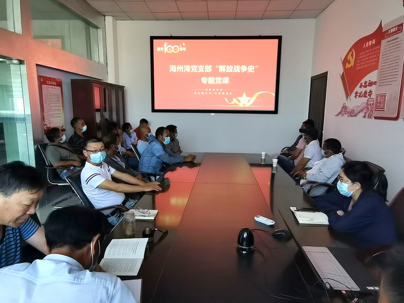 為扎實(shí)推進(jìn)黨史學(xué)習(xí)教育深入開展,強(qiáng)化學(xué)習(xí)實(shí)效,8月25日下午,海州灣黨支部組織全體黨員和入黨積極分子上了一堂生動(dòng)的黨史學(xué)習(xí)教育專題黨課。
